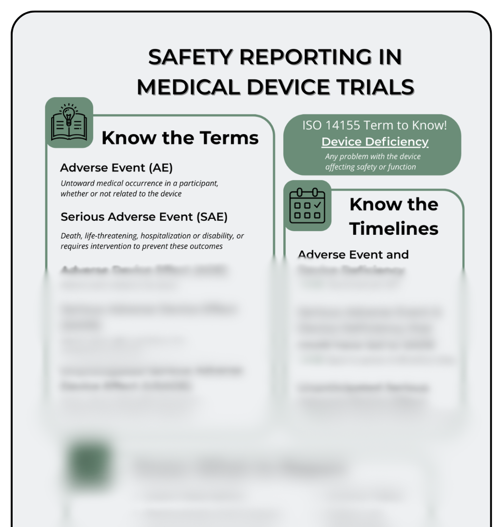 Your quick-reference sheet for AE, SAE, ADE, SADE, USADE, and device deficiencies — designed for sites, investigators, students, and sponsors who want clear, confident reporting.